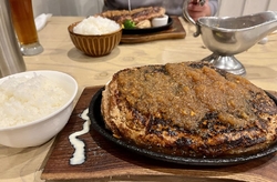 結婚記念日に予約して来店しました。平日の夜だったのですが、店内は予約席や来店客でほぼ満席でした。ほとんどランチの利用でディナータイムでの利用は、かなり久々なんですが…特別な日なので迷いましたが、やっぱり大好きなハンバーグって事で、ハンバーグ(大)を注文。それと主人がソーセージ盛り合わせを注文。車運転じゃなかったら、ビールを飲みたかった位にビールのあてに最高ですね〜。夜は、アルコールで利用されてる方が多いのが印象的でした。店内も賑やかですね〜。 お箸で食べられる柔らかいハンバーグ…食べ終わる頃には、お腹がはちきれそうな程でした。大満足な記念日ディナーになりました♪