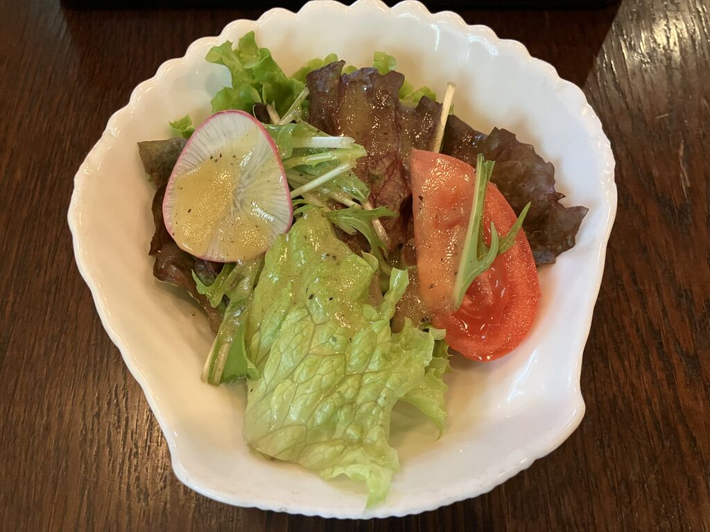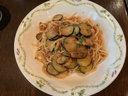 初めての来店です。パスタランチがデザートまでついて1408円だったのでお得と思いこちらに。パスタは茄子とツナのトマトソースをチョイス。まずサラダが到着、その後にパスタ。薄切りの茄子が沢山のってツナが絡まってにんにくがきいて美味しかったです。食べ終わった後デザート三種の見本を見せてこの中から一つを選んでくださいということでバニラのケーキ(?)をチョイス。一緒に行った後輩はシフォンケーキでこちらのが大きかったから失敗?とも思ったけどとても美味しく頂きました。飲み物はホットコーヒーにしたらおかわりで勧められてもう一杯頂けました。おしゃれなお店なのでまた機会があればお邪魔したいと思います。ご馳走様でした。