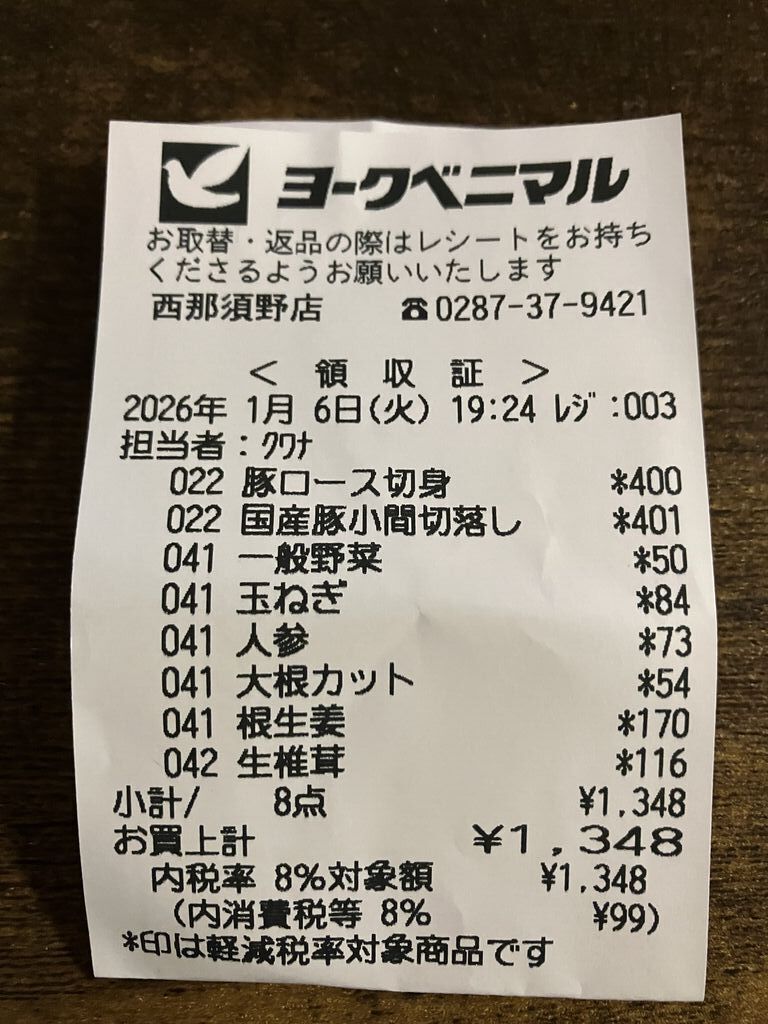 ichigochanさん 矢板市 総合レベル86 ファン19 クチコミ ヨークベニマル 西那須野店 那須塩原市/スーパーマーケット 142 5 豚汁を作りたくて食材を買いに行きました。大根2分の1が54円、白菜4分の1が50円と値引きされていてとてもお得に購入出来ました。 訪問日:2026.01.06 "ぐッ"ときた! 8人 ichigochanさんのクチコミ一覧に戻る