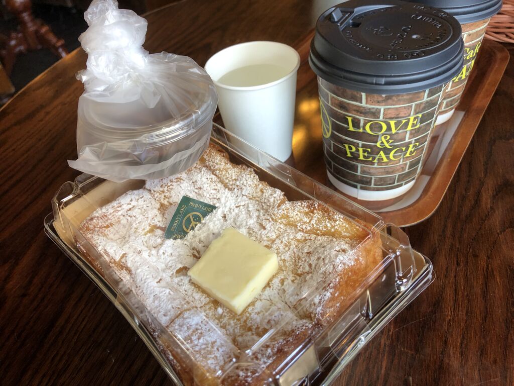 お昼にイートイン利用しました!週末と言うこともあり、ご家族でのイートインの方が何組かいました。テイクアウトももちろん多く、店内賑わっていました!迷いに迷って、フォカッチャのサーモンクリームチーズとホットコーヒーを購入!初めて見かけたフレンチトーストをテイクアウトしました!フォカッチャはもちもちの生地で思ったよりも歯切れよく、オニオンマリネとサーモンの相性が抜群☆具沢山で大満足です!フレンチトーストはかなりの重量感でビックリ☆卵液しみしみでずっしり感が凄い☆バターとメープルシロップと一緒に、間違いなしの美味しさ☆家族でシェアして楽しみました!