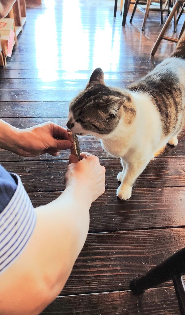 初訪問、以前から気になっていたお店です。外観も緑を多く、店内も鳩時計や暖炉など可愛らしく素敵でした。平日限定ランチ10食をあらかじめ予約して伺いました。今週の週替りランチは『猫ちゃんライスのレモンクリームカレー』でした。サラダ・小鉢・たっぷりきのこと野菜のスープ・飲み物付きです。カレーなのにレモンが入っているので爽やかで初夏を感じるお味でした。ライスも猫ちゃんを形どってあり食べるのが勿体ないくらいでした(^^)手羽元もホロホロに柔らかく美味しかったです。また、サラダの手作り玉ねぎドレッシングもとても美味しくて感動!一緒に行った友人もとても気に入っていてたっぷりかけていました♪店主の方も気さくな方でたくさん話しをさせて頂きとても良い時間を過ごせました(^^)看板猫ちゃんにも触れ合えて大満足です!また伺いたいと思います