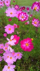 【秋】と【桜】の漢字を組み合わせた花の名前。コスモスを見に行ってきました。満開で見応え抜群♡正に秋に咲く桜の様な花弁でした。ひとつひとつ色合い・模様が違っていて美しい姿でした。15年振り位に鬼怒グリーンパークに足を運びましたが、年齢を重ねたせいか沢山の感動を味わいました。特に景色に感動。久し振りに変形自転車の2人乗り(30分¥500)も利用し、風を切って風に吹かれながら秋桜を見られたのは、善き想い出になりました。テントを設置してのんびり過ごしたり、バドミントンをしたり、アスレチックをしたり、ボートに乗ったり、インラインスケートを楽しんだり、朝から晩まで楽しめる鬼怒グリーンパーク。改めて素敵な所だわぁ〜と感激です。ぶっかけうどん¥500も青空の下食したので美味しさ倍増。最後から2枚目の写真が秋桜の下に沢山咲いていて可愛い(*˘︶˘*)かった。あまり見かけた事のないこちらの植物は『ノゲイトウシャロン』という名前だそうです。