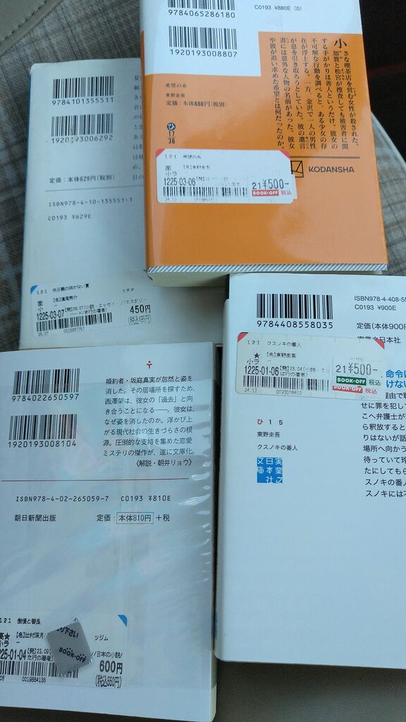 あんなに猛暑だった夏も去り、やっと秋が訪れ過ごしやすい日々。と、なれば読書の秋でもあります。夏は休んでいた毎朝の読書タイム。10月になり再開したので、ずっと読んでみたかった本を探しに【ブックオフ宇都宮竹林店】さんへと足を運びました。あったあった!‼読んでみたかった本達と出合えました(=´▽`=)あれも、これも、それも欲しい読みたい...と思う本ばかり。慌てず少しづつ読んでいければなと思います。アプリに登録してあるクーポンで、¥100引きしていただきました。買って善し、売って善しです。