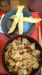 わくわくの初来店【かしわ飯セット】¥1,000(税込)を先に券売機で購入しました。券を、お店の方にお渡しするスタイルです。先にお漬物が...と、あれっ?食べてみるとおやっ?あっ!!!お漬物ではなくて、うどんを揚げたスナック菓子でした。だからか(笑)主人が手で食べていたのは...と納得。これが思いの外美味しくて、ポリポリ食べ進めました。牛蒡の天麩羅がサックサクで後、5本位食べたい勢いです。うどんは2人とも大絶賛♡真っ白ではなく、透明感のある艷やかな、歯ごたえが優しいおうどん。つるつるっと食べやすく軽い口当たりです。明太子食べ放題も魅力。大通り沿いにある【博多うどんはちまき】これから流行りそうですよ。