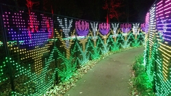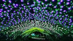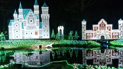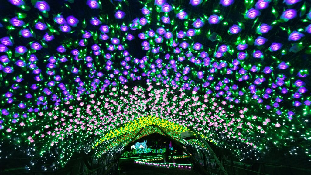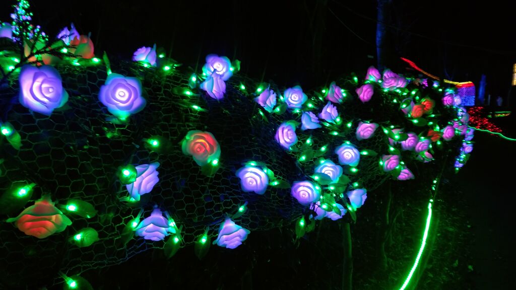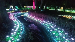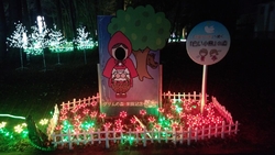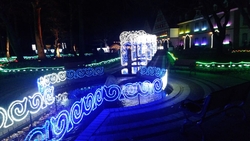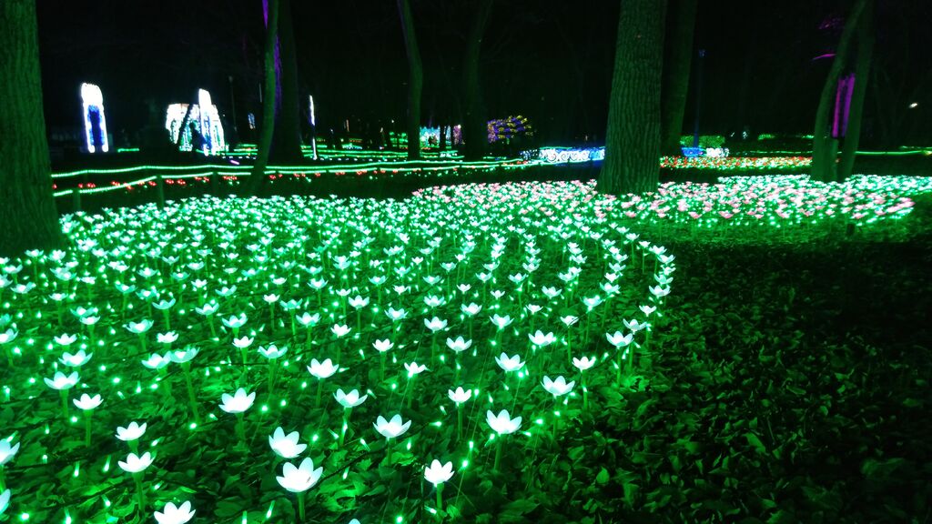 17時過ぎに到着したので、駐車場に入る前からキラキラしたイルミネーションが見えてワクワクします。駐車場も結構うまっていましたが、奥の方に行くと割合に空いています。フォトスポットもあって、たくさんの人が写真を撮って楽しんでいました。水面に映るお城や色とりどりの花の灯りがおとぎ話の世界に入ったようで綺麗でした。
