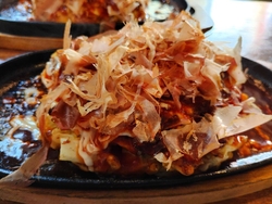 久しぶりにお好み焼きを食べたかったので、今日のランチは気になっていた風熊さんへ。ランチメニューから、私は「お好み焼き&焼きおにぎりセット(みそ)」、連れは「お好み焼き&ミニオムライスセット」を頂きました。“焼きおにぎり”は思ったよりも大きくて、たっぷりの鰹節が踊っていて美味しそう♪ 「スプーンで食べると食べやすいです」とのことで、味噌は塗られていない?と思いつつスプーンで割ると、中にたっぷりの味噌が。熱々の鉄板に乗ってくるので、揚げ玉やおにぎりの表面ががカリカリになって、鰹節もパリパリで美味しい(*'▽') “お好み焼き”は、ざく切りのキャベツがたっぷり入っていて、シャキシャキした食感とたっぷりのソースが美味しかったです。写真の保存に失敗して画像はないですが、“オムライス”は、お好み焼きソースを使っていて不思議な味わいでした。