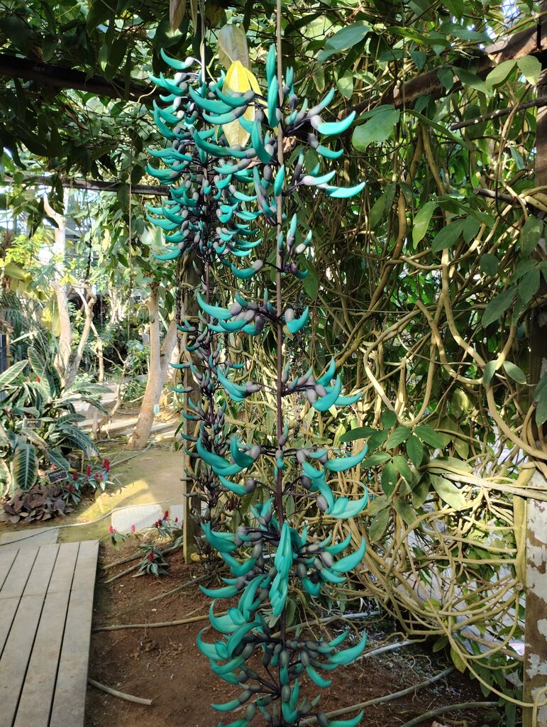 一度見てみたかったヒスイカズラが開花していると知り、行ってきました。入口を入ると洋ラン展をやっていて、色々と趣向をこらした洋ランが並んでいます。温室内はたくさんの植物があって、名前は知っていても実物を見るのは初めてなものが多くて、ワクワクしっぱなし。スタッフさんのPOPが分かりやすく、“シャンプーの木”では本当にシャンプーをした写真もあって、楽しみながら見て回れます。お目当ての“ヒスイカズラ”はまだまだ咲き始めのようで、数は少なかったものの神秘的な色合いで綺麗でした。カカオやコーヒーの実・バニラもこうやって生っているんだぁと感動。一日で花が落ちてしまうので見られたらラッキーという“オオミトケイソウ”も一輪だけ咲いていて運がいいね!とテンションも上がります(笑)のんびり歩きながら、気付けば1時間も中にいたのでじんわり汗をかくほど。一棟建てでは国内最大級というだけあって、見ごたえのある温室でした。栃ナビのクーポンで2割引きになるのでお得ですよ(^^♪