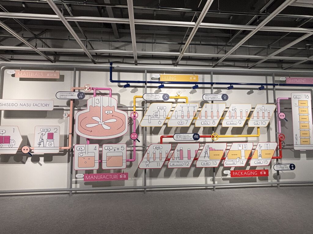 平日のお休みを利用して前もって予約をし資生堂那須工場の工場見学に参加して来ました‼︎工場に入るための自動ドアはホコリなどの異物を入れない為に外側が閉まった状態でないと内側が開かないという構造です。ビューティーウォークと呼ばれる工場内のベルトコンベアを模した通路で那須工場の特徴の説明を受けます。壁にはその工程の素敵な絵などが描かれています♡更に奥に進み化粧水や乳液の製造過程や梱包、出荷までの一連流れを見る事が出来ました。休憩時間には見学のお土産をガチャガチャを回してシャープペンを頂きました。(他にも素敵なお土産ばかり)ワークショップは那須の香りアロマストーンづくりでした。自分でブレンドしオリジナルの香りが出来上がりました。大谷石に垂らしアンティーク風に飾り日々、香りを楽しみたいと思っています(*´∀`)♪2時間と言う時間でしたが充実した楽しい時間を過ごしました〜♪