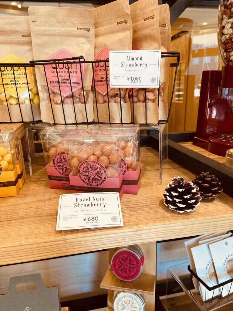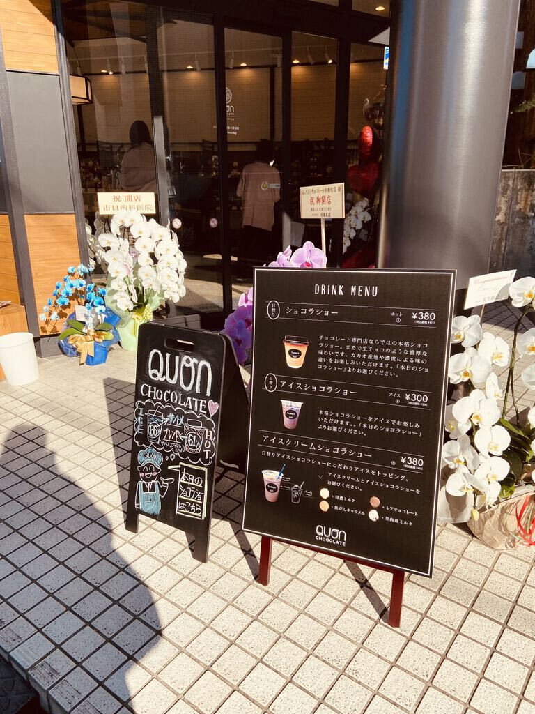 戸祭方面でランチの帰り、食後のデザートが食べたいね~と、気になっていたQUONさんに初来店。可愛く陳列されたチョコレートたちに目移りしましたが、テリーヌ3個セレクト(702円)とアイスショコラショー(チョコレートドリンク:324円)を購入。自宅用でもかわいいパッケージに気分が上がります。テリーヌは自宅に戻ってから大事に味わっていただきました。ショコラショーは66%。どちらも上品な味わいでした。お土産やお持たせにも喜ばれそうですね。ごちそうさまでした~!
