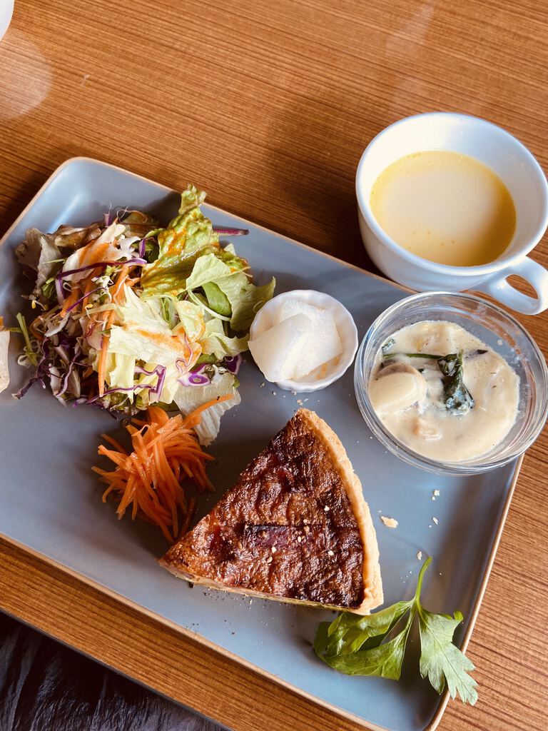 友人と4人でモーニングに伺いました。いろいろあって迷いましたが、キッシュ朝食(1380円)を注文。ワンプレートにキッシュ・サラダ・デリ・フルーツが乗っていてスープとドリンクが付きます。存在感のあるキッシュがとってもおいしくて、今まで食べたキッシュで私の中では一番かも♪入店時に11時半までの約束だったのですが、予定の関係でもう少し在店していたく人数が2人に減ったので、一度会計した後に再度席を取ってもらうことができ、小さなカップに旨味と苦みが濃縮されているエスプレッソ(450円)を注文。とても人気店で朝からお客さんがたくさん来ていましたが、ソファ席でゆったりと過ごすことができました。ケーキも気になったので、次回はケーキセットやランチにも行ってみたいです。ごちそうさまでした~!