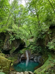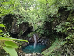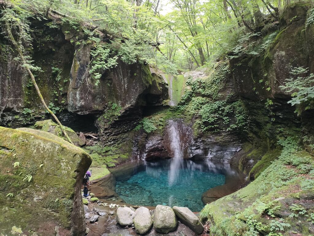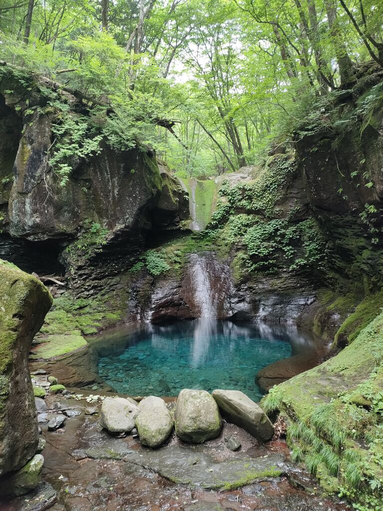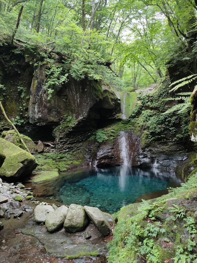友人の水辺にドライブに行きたいというリクエストで、はじめて伺いました。駐車場はほぼ満車。他県ナンバーも見られました。滝までは遊歩道が整備されていて、手すりもありますが結構な高低差があり、決して足元も良いとは言えないので、サンダルやヒールは止めた方が良さそうです。行きでは戻る人と挨拶を交わしたりと自然の中ならではの雰囲気も楽しめました。ようやく滝に着くと、エメラルドグリーンの滝つぼが現れ、何とも言えない感動がありました。残念ながら滝自体は見られませんでしたが、これまでの流れの跡が滝のように見えてとても素敵な景色を楽しめました♪栃木に住んでいて今まで来なかったのが悔やまれるくらいの絶景で、また違う季節に来てみたいと思いました。帰りの登りはキツかったのはいうまでもありません_(:3 」∠)_