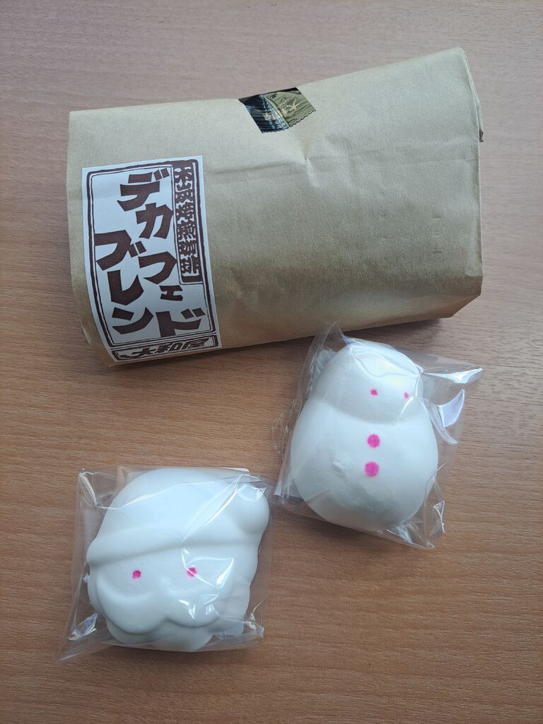 クリスマスに似合う素敵なものを下見に行ってみました 今回はクリスマスカラーな靴下(¥605税込)とサンタさん(カスタードクリーム入)と雪だるま(チョコクリーム入)のマシュマロ(各¥156税込)と コーヒー豆の香りの誘惑に負け、デカフェブレンドを豆で100g(¥901税込) 買いました 店内はクリスマス仕様のギフト向けお菓子だけでなく、バラ売りの自分用に買いやすいお菓子が色々ありました クリスマス柄の手ぬぐいも素敵でした 今は終了されていますが、アトリエ憂さんの展示会も店の奥側で開催されていました テイクアウトのコーヒーも美味しい大和屋さん、またゆっくりパトロールしながら、素敵な出会いを楽しみに伺います