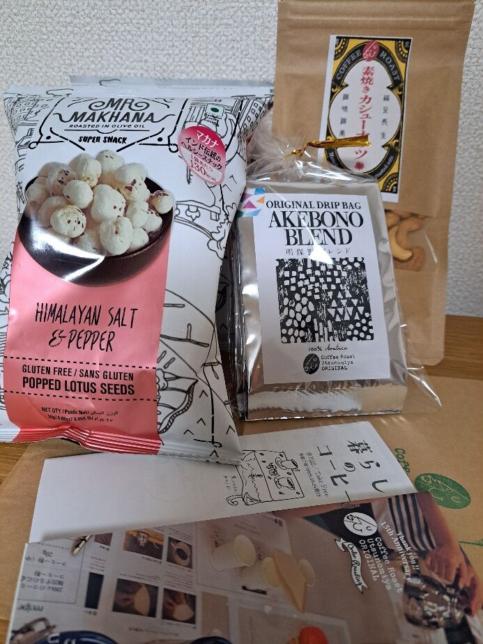 11.25火曜日から12月中旬までお休みになると知り、仕事後に電話注文、閉店時間1時間切っていましたが、伺うことができました(忙しい中、ありがとうございます!) 今回は注文後に焙煎のデカフェ豆2袋と ギフト用にパックされた明保野コーヒー、オニバスの種をオリーブ油でローストした珍しいスナック(岩塩と黒胡椒)を買いました コーヒーロースト宇都宮店さんの季刊誌『暮らしのコーヒー』第十号も複数一緒に入れてくださり(←私の大好物!)、帰宅後に家族でこちらに載っていたコーヒークイズをしました 忙しさが加速していく年末年始、ゆっくりと営業再開を楽しみにしています