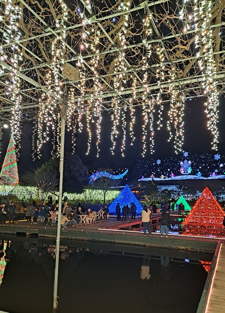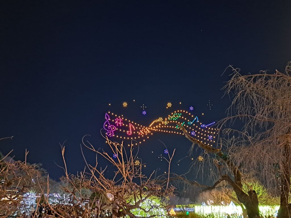 県内で行ったことのない観光スポットを行こう!キャンペーン中な我が家の年始のおでかけ先は、職場の方オススメのお正月に行くあしかがフラワーパーク! ドローンショーの影響から、混雑予想をしていてコンビニで前売り券を買っていきましたが、夜の部開演時間少し前なら、当日に新聞折込広告の割引や、学生入園割引額で問題なく入れそうでした 暗くなる前に園内の花たちや売店をみたり、通常¥350のおしるこが先着特典¥100でいただけるサービスを活用したりと 色々まわりました トイレや売店は豊富にあり、混み出して日が落ちても行列になるほどではなく、『すごく寒い!』以外はよかったです(笑) ドローンショーを待つ時に体温をうばわれるので、暖かい膝掛けや帽子手袋他、防寒対策されていくことをオススメします 行った日がちょうど年始初の満月の日で、写真にちょうど入るように撮るのも楽しかったです 寒い中、花のメンテ等をされている姿を何回も見かけて頭がさがります!次は藤の花シーズンの昼間にも行きたいです