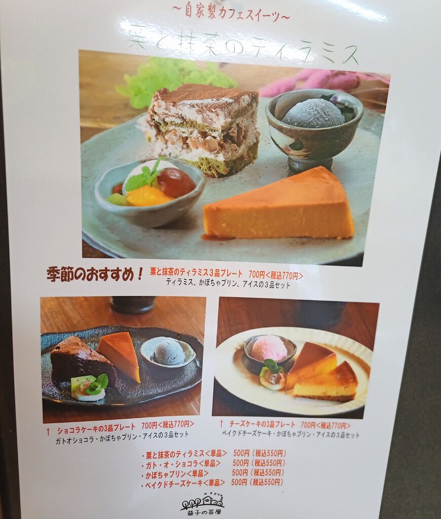 リンゴォさん 真岡市 総合レベル139 ファン139 クチコミ 和風カフェレストラン 益子の茶屋 益子町/カフェ・喫茶店 865 726 「栗と抹茶のティラミス3品プレート」とドリンクバーのセットを注文しました。アイスは日替わりで、このときはキャラメル味のアイスでした。季節限定の栗と抹茶のティラミスには栗がゴロッと入っているのが嬉しいです。かぼちゃプリンも安定の美味しさです。 訪問日:2025.10.05 "ぐッ"ときた! 12人 リンゴォさんのクチコミ一覧に戻る