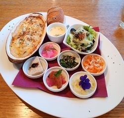 リンゴォさん 真岡市 総合レベル140 ファン144 クチコミ クローバー ボヌール 大田原市/カフェ・喫茶店 564 390 再訪です。「ボヌールプレート」を注文しました。メインはハンバーグ、白身魚、ドリアから選べます。前菜はトリュフマリネ、さつまいもサラダ、バルサミコソースがかかったパテ等、色鮮やかで華やかです。一つ一つ手が込んでいて美味しいです。スープとサラダがワンプレートに乗っていてるのも嬉しいところです。芥子の実がついたクランベリー入りのパンも本格的な美味しさでした。ポイント交換も使わせていただき、ありがとうございました。 訪問日:2025.12.26 "ぐッ"ときた! 24人 リンゴォさんのクチコミ一覧に戻る