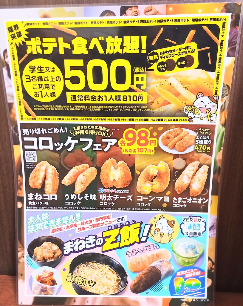 リンゴォさん 真岡市 総合レベル143 ファン145 クチコミ カラオケ まねきねこ 小山城北店 小山市/カラオケ 30 3 コロッケフェアのコロッケを注文しました。1つ98円でお手頃価格です。売り切れ御免でなくなり次第終了になるとのこと。5種類のコロッケがあり、明太チーズ、たまごオニオン等から選べます。黄金バターコロッケを食べましたが、美味しかったです。カラオケ店ですがフードメニューもおすすめです。 訪問日:2026.02.14 "ぐッ"ときた! 13人 リンゴォさんのクチコミ一覧に戻る