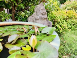 初めてイートインして【アップルマンゴー ワッフルコーンソフト】と【いそべ焼き団子】をいただきました。隣に工場があるので出来立てが食べられて最高でしたよ♪やっぱり餅のふわふわ感と焼きたての感触と香ばしさがたまりません(〃ω〃)♡︎♪︎中庭の様な所には、ハンモックがあり、子供達の遊び場になっていました。テラスで紫陽花を眺めながらもいいですねー。お店の入口の手前には、鳥居があり、えびす様かな?そこにはもうすぐ咲きそうなスイレンがちょこんと顔を出していました(^^)老若男女幅広く親しまれているお店です。