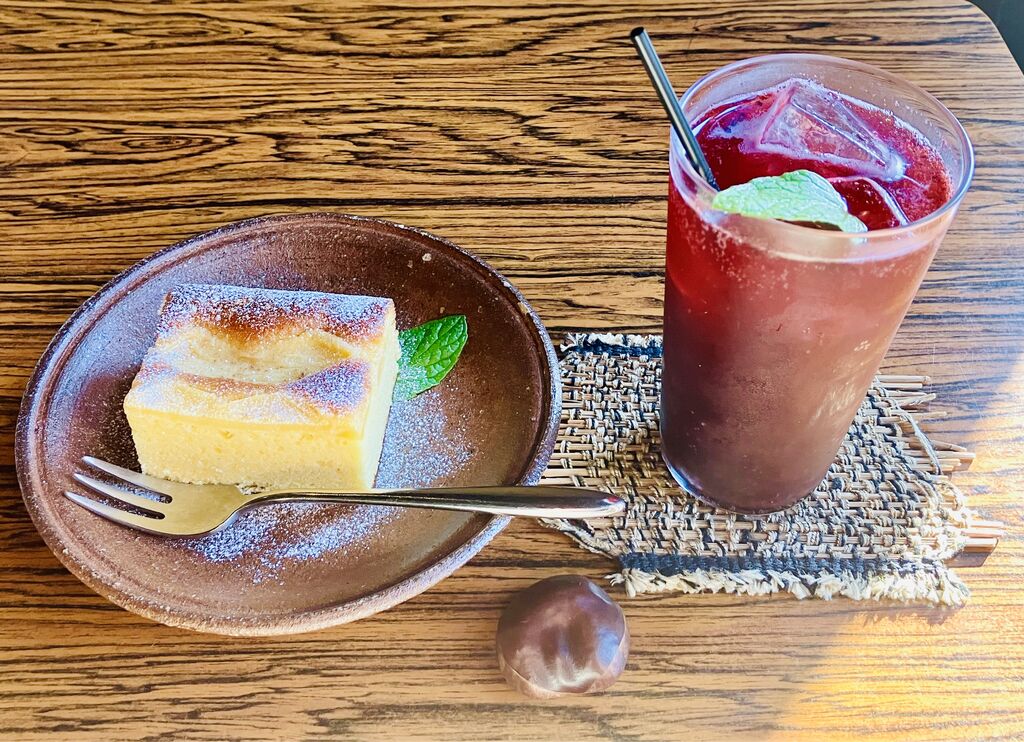 初訪問です❣️最近は、食欲の秋で底なしの胃袋になっており、最初は【自家製ブルーベリーソーダ・りんごのケーキ】を!追加で【ホットのほうじ茶ミルク・ティラミス】をいただきました♪ほうじ茶ミルクは、甘さが無いのでお好みできび砂糖かな?入れていただきます。ティラミスってお店により違いがありますがコチラのティラミスは、とろける滑らかクリームと底の方は、じゅわ〜っとした感覚でまさに好み(o˘◡︎˘o)♪︎2階の窓際に座れてラッキーでした(^^)天井を見ると4代目・・・と柱に書いてある!調べてみたら大正時代に建てられたモダン建築!元々は、江戸時代後期から煙草の卸売商をしていた関根家の建物だと云うことを知り写真の意味が分かり納得(^^)