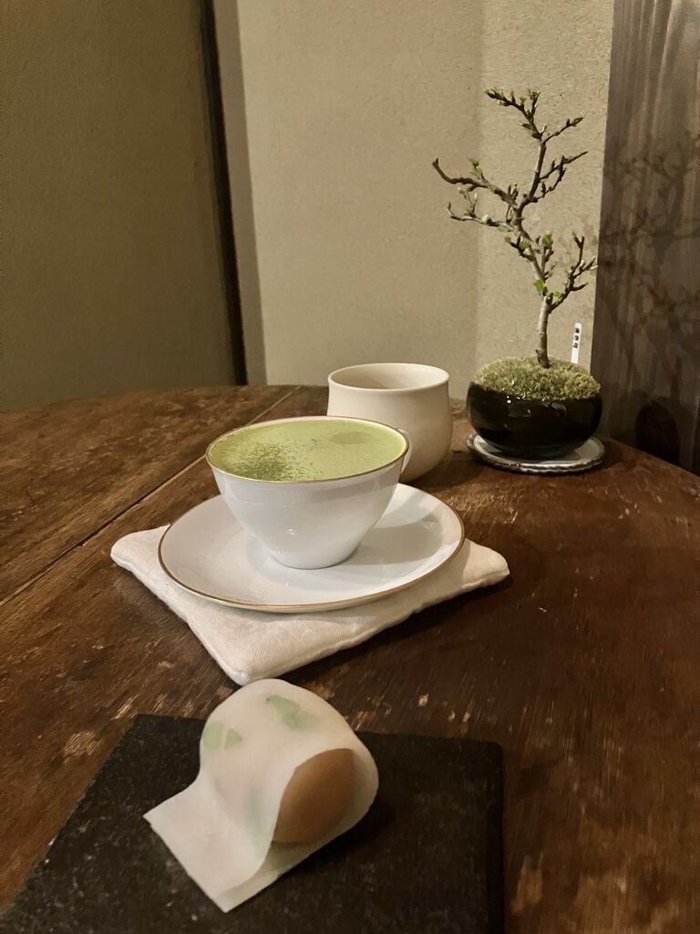 先週に引き続き2度目の訪問です。さて着席し、白湯をいただきながらメニューから先ずは、【抹茶ラテ】と取り置きしていた【金柑の木の芽の外郎巻き】&ホットの【浅煎りラテ】をいただきました。金柑・・・美味しかったぁ〜(o˘◡︎˘o)♪︎それぞれの食感を愉しみ味わい直ぐにでもリピートしたくなる和菓子です。抹茶ラテは、熱めで好み⤴︎⤴︎ラテアートの大きなハートが印象的❣️浅煎りにすることで紅茶のような香りになるとオススメされました。確かに浅煎りにすると一風変わった華やかな味わいのラテになります。長居しましたので、2度目の白湯をいただき、お心遣いに感謝です(ღˇ◡︎ˇღ)この日は、22時迄の営業で時間ギリギリまで色々なお話ができ有意義な時間を過ごせました꒰ღ˘◡︎˘ற꒱✯︎*・☪︎:.営業日は、水・木12時〜19時 金・土14時〜22時 日12時〜18時。定休日は、 月・火です。イベントなどに参加されている時は、変更などもあります。駐車場は、お店の裏側に2台(タイヤ止めのある箇所)詳しくは、お店の前の道に長◯島と看板のある家があり、そのT地路を西に曲がると向かって左手にあります。もう一つは、嘉右衛門町伝建地区無料駐車場があります。前回カフェと書いてしまいましたが、後から知り、カフェではなく『喫茶』でした。失礼しました。そして以前も書きましたが手元以外は、撮影許可が必要ですのでよろしくお願いします。【栃木市嘉右衛門町 珈琲 無垢】