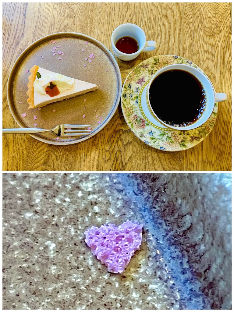 デリシャスが語源と云われている【デリス】を取り置きしていただきました。それに久々に【カフェラテ】を注文!カフェラテは、エスプレッソにスチームミルクがふわっと柔らか♪︎デリスは、フランボワーズとピスタチオクリームを挟んだケーキで思っていたよりフランボワーズは、酸味より甘味を感じ疲れを癒してくれます♪とにかくこの日は、過密スケジュールで昼食抜きだった為あっという間にお腹の中に吸い込まれ、次に「桜のレアチーズに合う珈琲を・・・」とお伝えしてテーブルに届いたのは、ペルーでした!深煎りのペルーは、柔らかさの中にコクも深みも感じられました。また桜の味わいのレアチーズは、しっかり塩漬けされた桜がアクセント!桜色のチップが散りばめられその中からハートを見つけHappyな気持ちに(ღˇ◡︎ˇღ)試飲→メキシコ‼︎香り豊かで甘さを感じました。こちらも美味しくいただきました♪いつもありがとうございます❣️珈琲をこよなく愛する栃ナビ!のみなさんには、最後の写真の貴重な《数量限定》珈琲を是非この機会にどうぞご賞味くださいませ(^^)