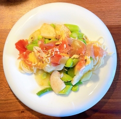 土曜のお昼に予約して伺いました。ランチメニュー3種からパスタをチョイス。パスタは2種類から選べて桃の冷製をオーダー。お店の方お一人でしたが調理から配膳までテキパキお仕事されてました。前菜は5種類で、どれも手が込んでいて見た目も鮮やかで美味しい~ワインが飲みたくなりました。パスタは桃の他にアスパラや枝豆や生ハムも合わさって塩加減もちょうど良くずっと食べれそうな一品♪ドリンクも付いて幸せ満足なランチタイムになりました。次回はスイーツも味わってみたいです。入口のショーケースにはお惣菜類やスイーツなどテイクアウト品が並んでいて、コーヒーやクラフトコーラなどのドリンクもテイクアウトできるようなので、近くに来た際はぜひ利用したいです。