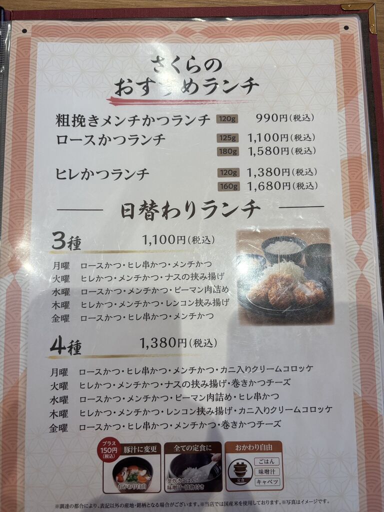 いった♪さん 宇都宮市 総合レベル61 ファン5 クチコミ とんかつ神楽坂さくら 宇都宮泉が丘店 宇都宮市/とんかつ 13 4 ランチで利用しました♪とってもリーズナブルで、気軽に美味しいとんかつが楽しめるのが魅力。日替わり4種もあり、選ぶ楽しさもあります。ロースとんかつはサクサクでお肉もやわらかく、とても美味しかったです。しっかり満足できるランチでした。コスパも良く、また行きたくなるお店です。 訪問日:2026.04.13 "ぐッ"ときた! 2人 いった♪さんのクチコミ一覧に戻る