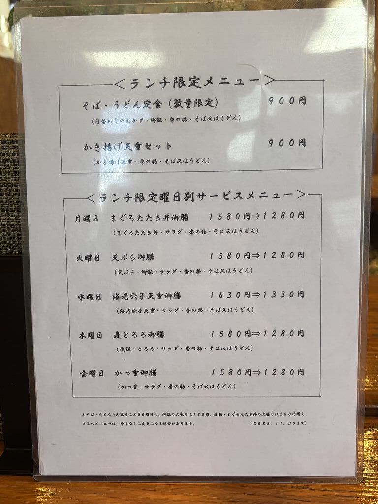 としちゃん№1さん 矢板市 総合レベル43 ファン20 クチコミ そば処 天盛 矢板市/うどん・そば 16 5 久しぶりに訪問しました♪ランチは初めての訪問です!かき揚げ天重セットを食べようと思っていましたが、曜日別サービスメニューに海老穴子天重御膳とあり、惹かれてしまい注文しました♪そばは細くコシがあり、エビはブリッとして穴子は一本入っていて感動です!とっても美味しかったので、通いたいと思いました♪ 訪問日:2025.11.19 クチコミタグ #ランチ #お1人さま #家族 #感動 #ごちそう #おいしい #また来たい "ぐッ"ときた! 9人 としちゃん№1さんのクチコミ一覧に戻る
