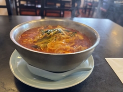 2度目の訪問です♪今回は人気の旨辛ラーメンにしました!オープンと同時に入店しラーメンをオーダー、そしてトチナビクーポンを利用してデザートをいただきました♪辛味と旨味のあるスープに、キャベツ・ニラ・玉ねぎ・ニンジン・タケノコ・キクラゲ・もやし・しめじと沢山の具を卵でとじてありとても美味しかったです♪辛さが足らなかったら自家製辣油を入れようと思っていましたが、十分に辛味がありました。料理を届けるタイミングで、紙エプロンをどうぞと渡してくれるサービス最高です!クーポンのデザートは杏仁豆腐にイチゴとバナナが乗っていて、辛いラーメンを食べた後にピッタリでした♪ありがとうございました。