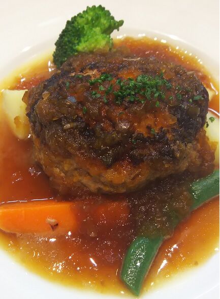 平日ランチに伺いました。ランチメニューは3種類ありますが、今回は前菜とデザートの付いたAランチ、メインは限定10食のハンバーグを選びました。前菜はサラダ、ポタージュ、キッシュがきれいに盛り付けられていました。ハンバーグはかなりの大きさ!たっぷりかかったソースと肉汁が混ざり合い、旨みが感じられます。プチパンが1個付きますが、もっと食べたくなります。100円で追加できるみたいなので、次回は頼もうと思います。前菜、デザートが付いて1,250円はかなりコスパがいいと感じました。