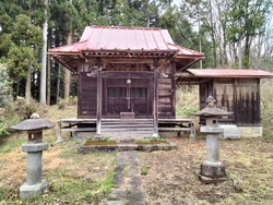 社務所兼公民館は青と白のスッキリとしたモダンな建物です。石段脇にはシダレザクラが咲いていて訪問を歓迎してくれているようでした。木々の少ないサッパリとした場所に社殿があります。本殿を窺うと数々の彫刻が施されておりました。向拝では凝った龍の海老虹梁が目に入ります。胴羽目では唐獅子親子が躍動し、脇障子では猩々(中国の古典書物に記されている妖怪)がノンビリとお酒を飲み、蟇股では鳥が囀り、リスが葡萄をほおばっておりました。それぞれの特徴を最大限に引き出した作品です。見ていて清々しい気分になりました。