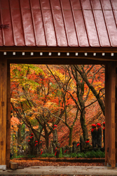 秋の初めの頃、栃ナビ「栃木の紅葉特集2020」トップページで見付けた金蔵院のお写真。一目見てくぎ付けになって以来、ネットで見頃情報とにらめっこの日々。そしてこの日、その素敵な景色の中に身を置くことができました。R293葛生バイパスから北に折れ走ることしばし、山あいにひっそりと建つ金蔵院にたどり着きます。駐車場に車を停め山手方向を見上げながら歩を進めると、程なくして写真で拝見した、いやそれ以上の絶景が目前に広がりました。幅5m程の堂々とした参道の両側には立派な枝ぶりのもみじが植えられており、落葉と相まって頭の上から足元まで全てが紅葉で包まれる雰囲気。その傍らには沢山のお地蔵さんが穏やかな表情で佇み、山門までの歩みを見守ってくれているよう。テレビや写真で見るような素晴らしい秋景色をこんなに近くで味わうことができるなんて最高の贅沢ですよね。観光地化されていない山あいの寺院でこの景観を創り出されたセンスには脱帽です。このクチコミが掲載される頃には見頃を過ぎているかもしれませんが、次の紅葉の季節には是非思い出していただき、この素敵な景色を味わってみて下さいね。絶対オススメです!