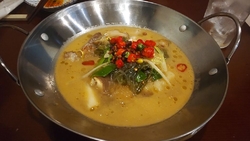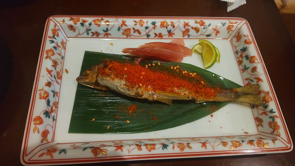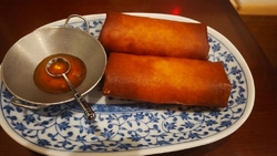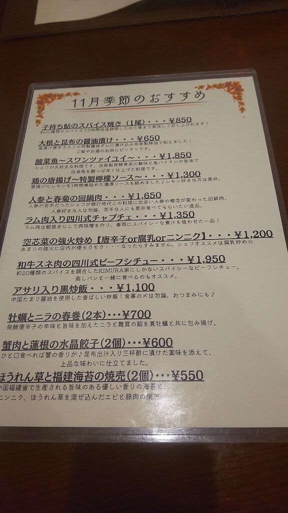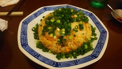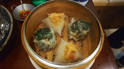 二度目のディナーです。大根と昆布の醤油漬け¥650は、見た目は辛そうだかそんなに辛くなく、辣油がおいしかったです。子持ち鮎のスパイス焼き¥850は、頭までやわらかく、卵がたくさん入っていてパリパリでおいしかったです。油淋鶏¥1400は、独特なスパイスの香りで見た目もかわいくておいしかったです。エビ春巻¥650は、前回も食べましたがやっぱりおいしい。酸菜魚¥1850は、酸っぱ辛くて山椒がきいてました。蟹肉と蓮根の水晶餃子¥600。ほうれん草と福建海苔の焼売¥550は、エビと豚肉も入っていて具だくさんでおいしく、海苔の香りが他にはない焼売でした。最後に海老チャーハン¥1200は、プリプリの海老とパラパラのチャーハンでした。他にはない中華料理屋さんで楽しめました。