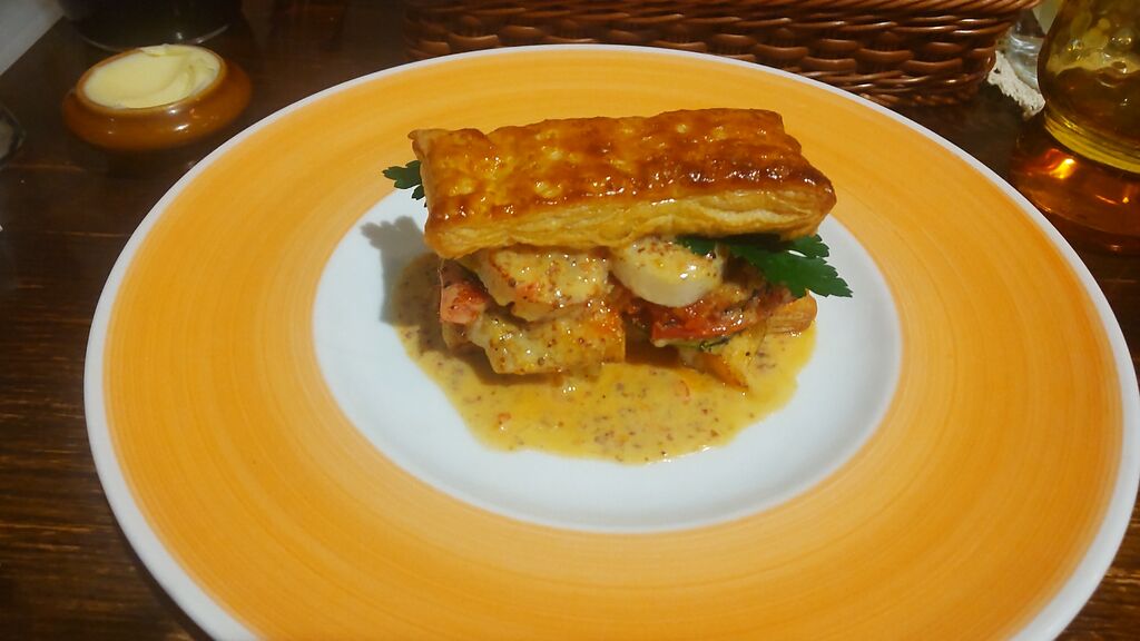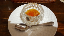 いろんな方のブログを見てマショネが復活したとのことで、前もってマショネコース¥4500を予約して伺いました。お通しは、カリフラワーのムースとズワイ蟹で蟹がたくさん入っていておいしく、これから出てくるお料理が楽しみになりました。パンが出て、+千円でアンサンブルの前菜を選びました。すごいボリュームで海の幸のサラダも少し入っていておいしかったです。特にゴボウとさつまいものフライがパン粉が細かくて素材を味わえました。この時点で腹七分目でした。その後季節のスープ。メインは+500円でホタテ貝のパイ仕立てと、+300円で牛ホホ肉の赤ワイン煮込みを選びましたが、とてもおいしく、こちらもすごいボリュームです。ここにおかわりパンか昆布ご飯を選べるとのことで、昆布ご飯にしました。そしてデザートは、パンナコッタのぜんざいと、りんごとラムレーズンのプリン。リーフのクッキーがかわいいです。とても満足ですし満腹になりました。また伺いたいお店です。