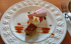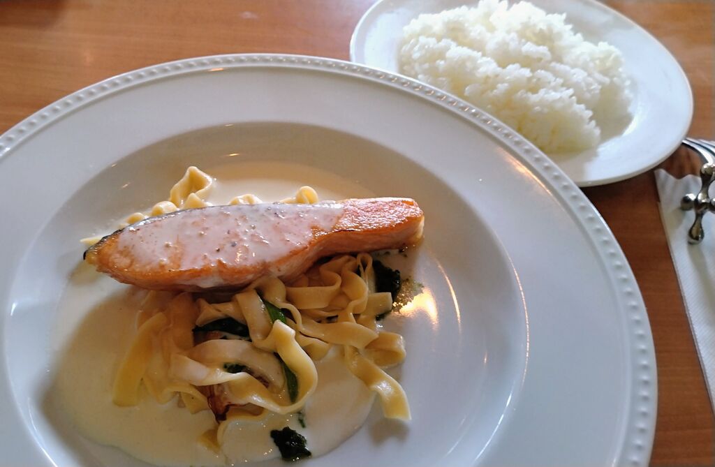 平日ランチタイム初訪問。玄関先に看板メニューがありましたが、中に入ると黒板メニューを持って詳しく説明して下さいました。注文は<スプーンコース/魚¥2200>を。お肉も選べ、私はサーモンの白ワインソースを半ライスでお願いしました。繊細な前菜盛り合わせは、生ハムロール、ブリュレ絶品です♡きの子のパイ包みスープは、たっぷりでメインでも良いくらい。デザートも上品な味わいで、トッピングの小さなパイが蝶々!目でも楽しめドリンクも付き大満足です◎この日のパスタランチは牛肉煮込みソースでした。ポイントカードもあるので、また伺いたいと思います♪