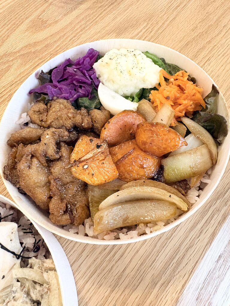 ランチにテイクアウトて利用しました。もちもち18穀米に様々なお野菜がたっぷり、グルテンフリーで彩り豊かなわっぱ弁当でピーマンを種ごと使ったソースや自家製マスタード、1つ1つがとても丁寧なお料理^ ^おうちにいながら栄養たっぷりヘルシー嬉しいランチとなりました♪