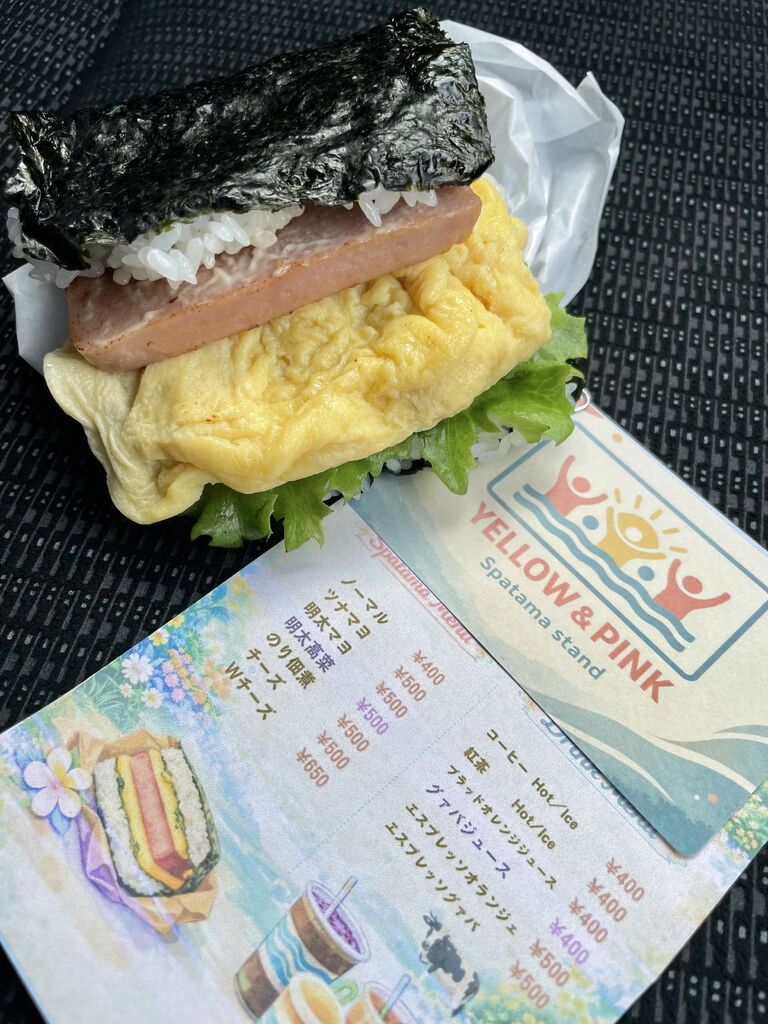 那須塩原市豊浦に新しく出来た、スパムおにぎり屋さん、yellow&pink spatama standさん。正確に言うと、所謂、おにぎらすです。沖縄県以外でスパムおにぎり屋さんは初めて見ました。テイクアウトのみで、注文を受けてから、使ってくれます。作り立てなので、スパム、たまご、ご飯が温かくて旨いです。多少のジャンク感が良いですね。お店はサーフィンをイメージさせるペイント。入口付近のオレンジ色のベンチで食べると南の島を感じます。今回のノーマルタイプ以外にも、明太子等、色々なフレーバーやドリンク類も有りますよ^_^