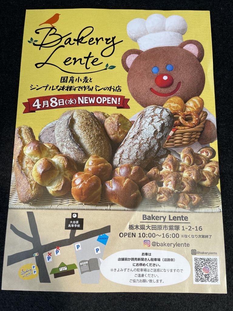 熊ちゃんさん 那須塩原市 総合レベル222 ファン307 クチコミ 大田原市 327 大田原市紫塚に開店したばかりのパン屋、Bakey Lenteさんです。Lenteとはラテン語でゆっくり、穏やかにと云う意味だそうです。国産小麦、天然素材に拘ったパン。確かに小麦の甘さ、旨さを感じます。今日はベーコンエピとクリームパン。ベーコンエピはベーコンの塩味で小麦の甘さが引き立ちます。クリームパンは濃いカスタードクリーム。濃厚でいて後味スッキリ。かなりの人気でパンは売り切りで閉店となりますので、10時の開店を狙った方が良さそうです^_^ 訪問日:2026.04.17 クチコミタグ #穴場 #感動 #ステキ #食べるべき #行くべき #買うべき "ぐッ"ときた! 12人 熊ちゃんさんのクチコミ一覧に戻る