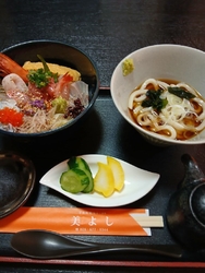 初めて食べに来ました。ネットで見ていて、これ食べたいと思って、11時過ぎにお店に入りました。それは、気まぐれ海鮮丼です。気まぐれ海鮮丼は、うどんもしくはそばがあり、冷たいもしくは温かいが選べます。今回は、冷たいうどんにしました。うどんは、歯ごたえがあり、のどごしが良く、とてもうまかったです。また、海鮮丼は、御膳と一緒にしょう油があり、このしょう油を使って食べてくださいと言われ使って見ると、しょう油の味がなんかまろやかな感じがして、このしょう油を海鮮丼にかけて食べましたが、とてもうまかったです。こちらのお店は、道の駅の温泉に数分のところにあり、温泉と食事の組み合わせで、また食べに来ようって思っています。ごちそうさまでした。