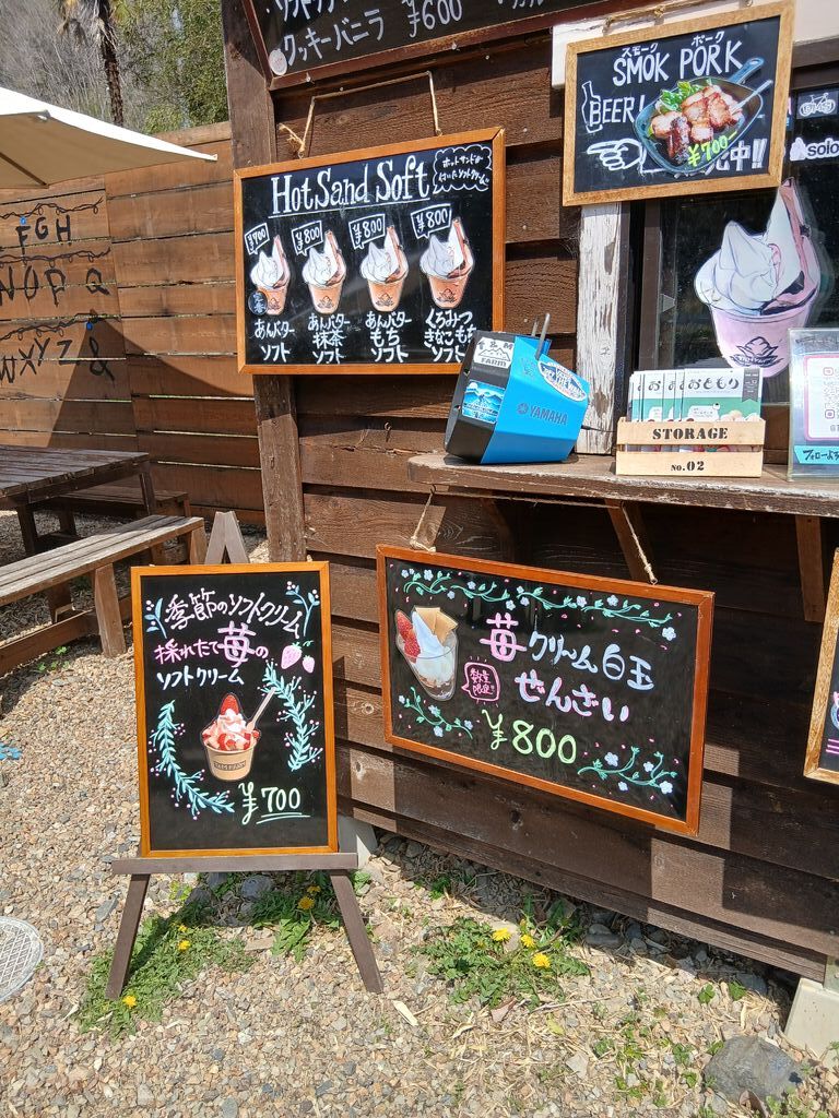 今日は、松田川ダムで花見をしてから、初めて食べに来ました。昨年桜を見に来て、帰りに気づいていたのですが、通り過ぎてしまいました。今回は、あらかじめインターネットで調べて、スモークポークを買って、アイスクリームを食べようと思っていました。ただ、アイスクリームの種類が多く、悩んでいたら女性店主が、採れたて苺のソフトクリームがいいですと、すすめられて食べましたが、とてもうまかったです。そして、家に帰ってからスモークポークを食べましたが、袋から出した時、スモークのいい香りがして、そのままでもうまいのですが、レモンを少しかけて食べたら、これまたとてもうまかったです。そして、年寄りの長話にも付き合ってくれて、とても楽しかったです。ありがとうございました。そして、ごちそうさまでした。
