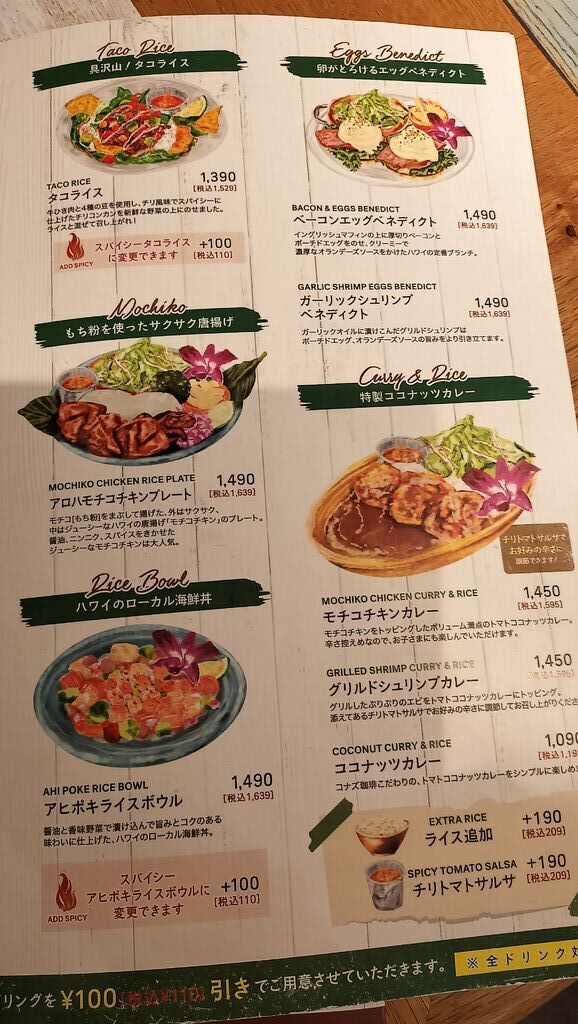 ずっとずっと気になっていたお店です。ランチタイムはなかなか入れないと聞いていたので今回はディナータイムに伺いました。18時半頃、すぐに席に案内していただけました。店内の雰囲気はザ、ハワイ。ゆったりとした時間がそこには流れておりました。お料理の種類も多くてあれこれ悩みまくりました。結局アボカドのたっぷりのったバーガーをいただきました。ボリューム満点でおいしかったです。 生クリームがたっぷりのったパンケーキを食べている人、お酒を楽しんでいる人、ロコモコを食べている人、周りの方々も楽しんでいらっしゃいました。次はランチ時にも行ってみたいです。