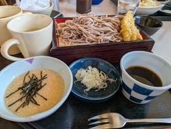 黒糖ゼリーと抹茶ムース・青のりの夢杉玉ポテト・とろろせいろそば・ドリンクバーをいただきました。さすが、日曜日のランチタイム。駐車場はもちろん、お店の中もたくさんのお客様で満杯でした。ですが、店員さんの頑張りのおかげで待ち時間も少なく席に案内していただき、注文からお料理の提供時間もすごい短かったです。いただいたお料理は全部激旨。黒糖ゼリーと抹茶ムースは、ぷるぷるの黒糖ゼリーもふわっと食感の抹茶ムースもまじ美味。青のりの夢杉玉ポテトも、見た目のインパクトもすごいけど、中身も手間がかかっていてすごいおいしかったです。とろろせいろそばも、食べ始めたら止められないおいしさ。一気の完食です。ドリンクバーでいただいたのはココア。ココアだけでもプレミアムココアや抹茶ココア、バニラココアなどがありココア好きにはパラダイスのようなドリンクバーです。久しぶりにお伺いしましたが、やっぱり大好きなお店です。