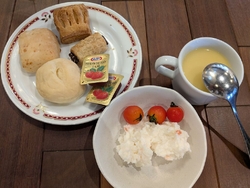 メニューがリニューアルされたとのことで、お伺いしてみました。メインはオムライス、ドリンクはマンゴージュースを選ばせていただきました。レジで注文し、お会計した時、試食のラスクをいただくこともできました。席に着いた後はパン・サラダ・スープが頂き放題です。パンはオーブントースターで温めていただくこともできるし、ちゃんとバターやジャムも置いてあるのが素晴らしいです。クリームやチョコが入っているパンもあるので、無限にお替りできそうです。サラダもおいしかった。スープはコーンポタージュ。大好きなスープなので、食べる前からお替り決めてました。マンゴージュースもおいしかった。すごい濃厚。オムライスも絶品。小さいサイズで来るのかと思っていたのですが、本気のボリュームサイズ。とろとろたまごも、たっぷりデミソースもすごいおいしかったです。物価が上がりっぱなしの今日この頃。美味しい食べ放題で、おなかもいっぱい、幸せもいっぱいになりました。