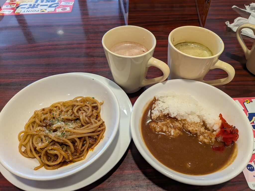 ガストフィットメニュー2をいただきました。39品の中から好きな物3品選べてドリンクバー・日替わりスープも付いてくると言う夢のようなメニュー。パスタも食べたいけど、ご飯も食べたい。でも、唐揚げも手放せない。そんな迷宮から救ってくれたのがこのガストフィット。すっごくありがたいです。なので、こく旨ミートソース(ハーフ)・ミニカレー・てりたるチキンの3品を選ばせていただきました。ドリンクバーでいただいた大好きココアを堪能している、わずか5分位の間にお料理到着。すごい早いです。まず、カレー。ぴりっとした辛味、奥深さ。超おいしいカレーです。ボリュームもまじちょうどいい。こく旨ミートソースも超おいしい。ミートソースもたっぷりだし、なんと言ってもサイズが良い感じ。多すぎず少なすぎず、良い感じで楽しめます。最後に届いたのが、てりたるチキン。かりっとしたから揚げに照り焼きソースとタルタルソース。から揚げも思ったより大きい。すっごい満足できるチキン。日替わりスープの洋風ジンジャースープもおいしくいただきました。以前から惹かれていたこちらのメニュー、安心価格で安心のおいしさ。満足できるボリューム。ずっと続けてほしいメニューです。