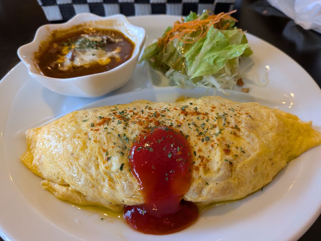 オムライスランチプレートをいただきました。何気なく見ていたインスタでこのメニューを発見。すぐに予約し、お伺いしました。スタッフさんに席に案内されると同時に注文。スープOR味噌汁は、スープ。ドリンクは青りんごでお願いしました。5分程で本日のスープ、かぼちゃのスープが到着しました。まじ極上のスープ。お替りできないのが悲しいです。程なく到着したオムライス。サラダ、しゃきしゃきでおいしい。小さく仕切られたお皿にちょこっと乗ってるだけなのに、ちゃんとボリュームあります。ビーフシチューも、すっごいおいしい。こんなにミニサイズなのに、本格的以上においしい。お肉がほろっほろ。これもお替りしたかったです。そして、オムライス。すっごいおいしい。昔懐かしい風合いのオムライス。インスタでひとめぼれしたオムライス。想像以上においしかった。ボリュームも丁度いい。チキンライスに隠されたピーマンがとっても素敵。これもお替りしたいおいしさ。デザートはチョコレートムースケーキ。デザートが選べるなんて素晴らしいです。しかも、クリームあんみつ・バニラアイスブルーベリーソースかけ・チョコレートムースケーキの三択。本格的すぎるメニューに迷いに迷います。その中でいただいたチョコレートムースケーキ。ふわふわしっとりで、すっごいおいしい。満腹だけど、もう一回全部お替りしたくなる美味しさ。レジ横にはおいしそうなパンが並んでました。お料理も美味しいけどパンもすっごいおいしそう。満腹なのに、食欲が収まらなくて困ってしまいます。