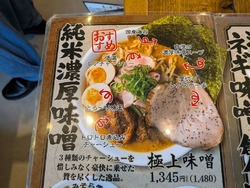 極上味噌ラーメン(1,480円)と5個餃子(390円)をいただきました。合計1,870円。のはずですが、なんとオープン2周年記念で、1,000円でいただくことができました。30分程待ち時間はありましたが、極上をいただくためなら全く気になりません。いただいた極上味噌ラーメン、まさしくご極上です。トッピングだけでもすごいボリューム。3種類のチャーシュー、柔らかくて肉感もたっぷり。味玉もとろっとして極上の美味。ねぎ、キャベツなどのお野菜も美味でした。もっちもち麺と、とろっと濃厚スープ。どれをとっても極上です。餃子も相変わらずおいしい。かりっとした皮、ジューシーな餡。これで1,000円とは、極上の夢でも見られないかも。外は冬の寒さですが、あったか味噌ラーメンのおかげで、体の芯から温まりました。