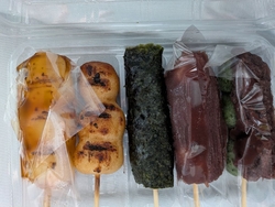 彩り団子をいただきました。すごい久し振りの木村屋さん。わくわくしながら、パックを開けると、海苔の香りと、醤油の香りと、お米の香りと、焼き立ての芳ばしい香りが、部屋中に広がりました。日本に生まれて良かったなと、思わせる位の素晴らしい香りです。もちろん、素晴らしいのは香りだけじゃありません。お団子の柔らかさも、もちっとした弾力も、風味もみんなみんな素晴らしいです。明日になれば硬くなる、今日中にお召し上がりくださいと、言われるまでもなく今日中に食べきります。ずっしりと重みのあるボリュームたっぷりのお団子。一粒一粒、噛みしめながらゆっくり味わったつもりですが、10分ちょっとで完食してしまいました。かしわ餅もとってもおいしそうだったので、季節が変わる前に、ぜひ頂こうと思ってます。