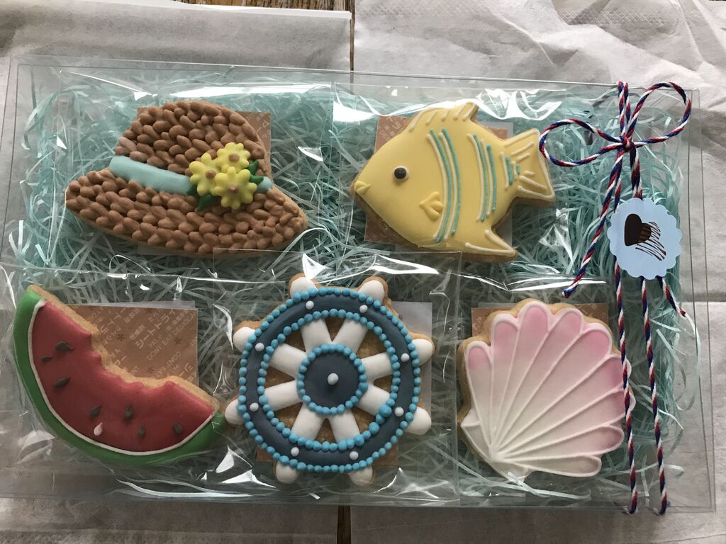 友人のプレゼント用に買いましたが、会えなくなったので自分で食べる前にパチリ。ここのお菓子はとても美味しいし可愛らしいのでプレゼントにピッタリです。焼き菓子だけで無くケーキやジャムなどもおすすめです。普通のお宅の縁側に商品が並んでいて、庭から注文する感じです。駐車場は有りませんが、すぐ近くに広くて安いコインパーキングがあります。アイシングクッキーの方は去年の夏に買ったものです。