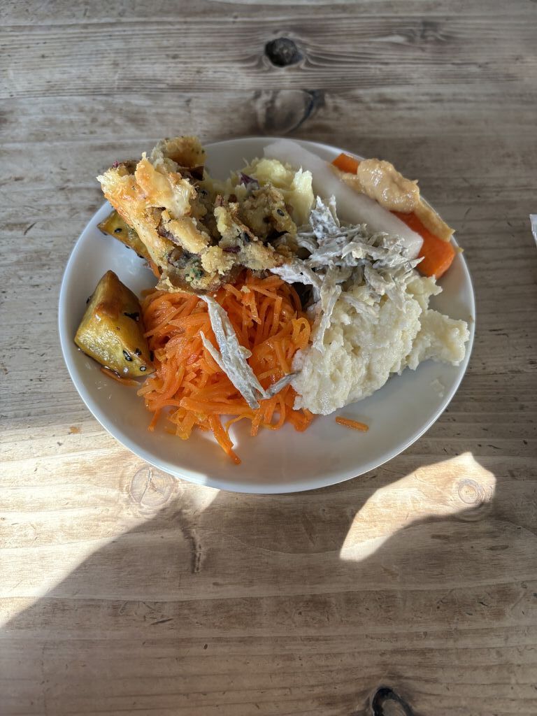 友達と二人で伺いました。日曜日だったので開店の11時30分前からお店の前に行列、予約していて正解です。お店の前では農家さん直送の新鮮野菜が売られていました。私はローストビーフ丼を連れは鰆のポアレをチョイス。オニオンスープとサラダバイキングとドリンクとデザートがセットでした。ローストビーフはお肉が柔らかくて、のっている卵がすごく濃厚で美味しい、那須御用卵だと思いますが、いつも食べている卵とは明らかに違う。サラダバーには新鮮野菜が沢山で一度にはのりきりません。おかわり自由なのですが、お腹がいっぱいになってしまいにんじんラペだけおかわりしました。連れの鰆も肉厚で、麹味噌のソースがとても美味しいとのことでした。次は、もっとお腹を空かせてサラダバーを制覇したいです。メイン料理によって値段は違います、私のは税抜きで3300でした。