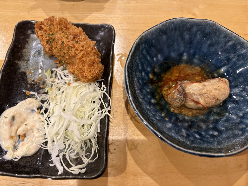 3回目の訪問です。牡蠣好きな人を見つけたらとりあえずこの店に勧誘することにしています。金曜日だったのでネットで予約しておきました!席だけ予約して、お店についてから色々選んで食べました❤︎オススメなのが生牡蠣の食べ比べ!今日はこれ!ってのを店員さんが説明してくれました(^^)産地が違うと、形も味も違いますね〜!そしてカンカン焼き(^^)大きなヤカン(のようなもの)で十分蒸された牡蠣をみんなで仲良くぱっかーんしていただきました!わたしは不器用すぎて手伝ってもらいました!カキフライや、いつもの柿の種も美味しく、いつも以上にたくさんお酒もいただきました(^^)